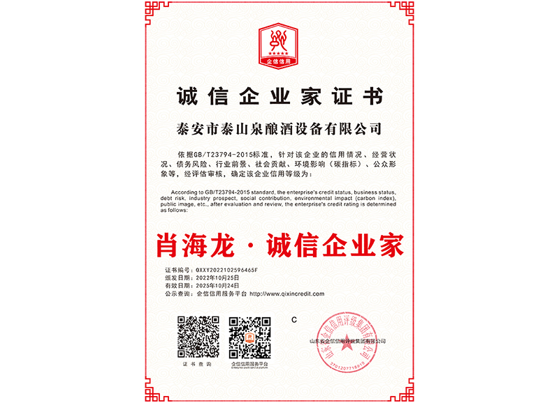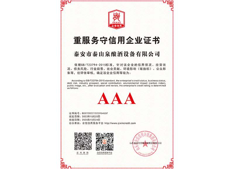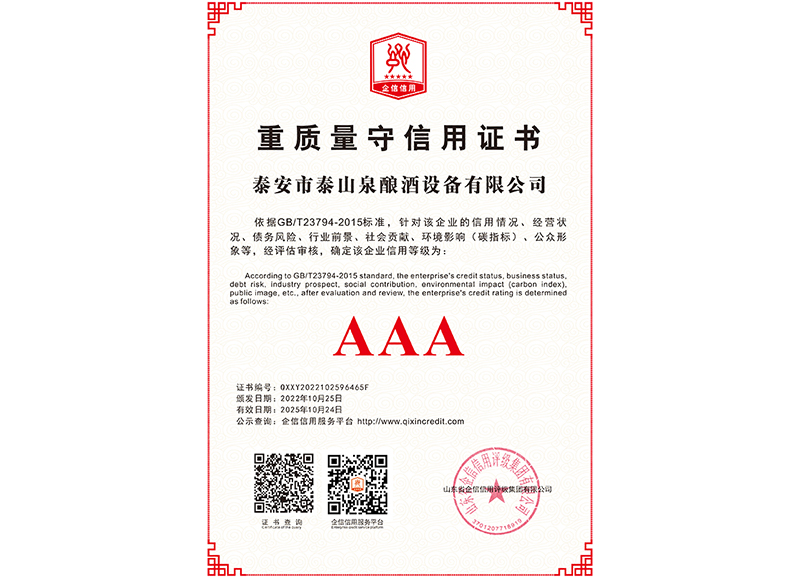 泰安市泰山泉釀酒設(shè)備有限公司,是一家專業(yè)從事釀酒設(shè)備機械化研發(fā)并集技術(shù)咨詢,工程設(shè)計,制造安裝,人員培訓及售后服務(wù)為一體的綜合性企業(yè),本公司主要產(chǎn)品為:大曲清香、小曲清香、大曲醬香、大曲濃香等香型白酒機械化設(shè)備。  本公司與中國科學院自動化研究所簽訂技術(shù)服務(wù)合同,引進先進技術(shù),研究生產(chǎn)全自動化機械釀酒設(shè)備,由中國科學自動化研究所的技術(shù)支持,打造最先進的生產(chǎn)釀酒設(shè)備,公司有信心打造全國最先進白酒...